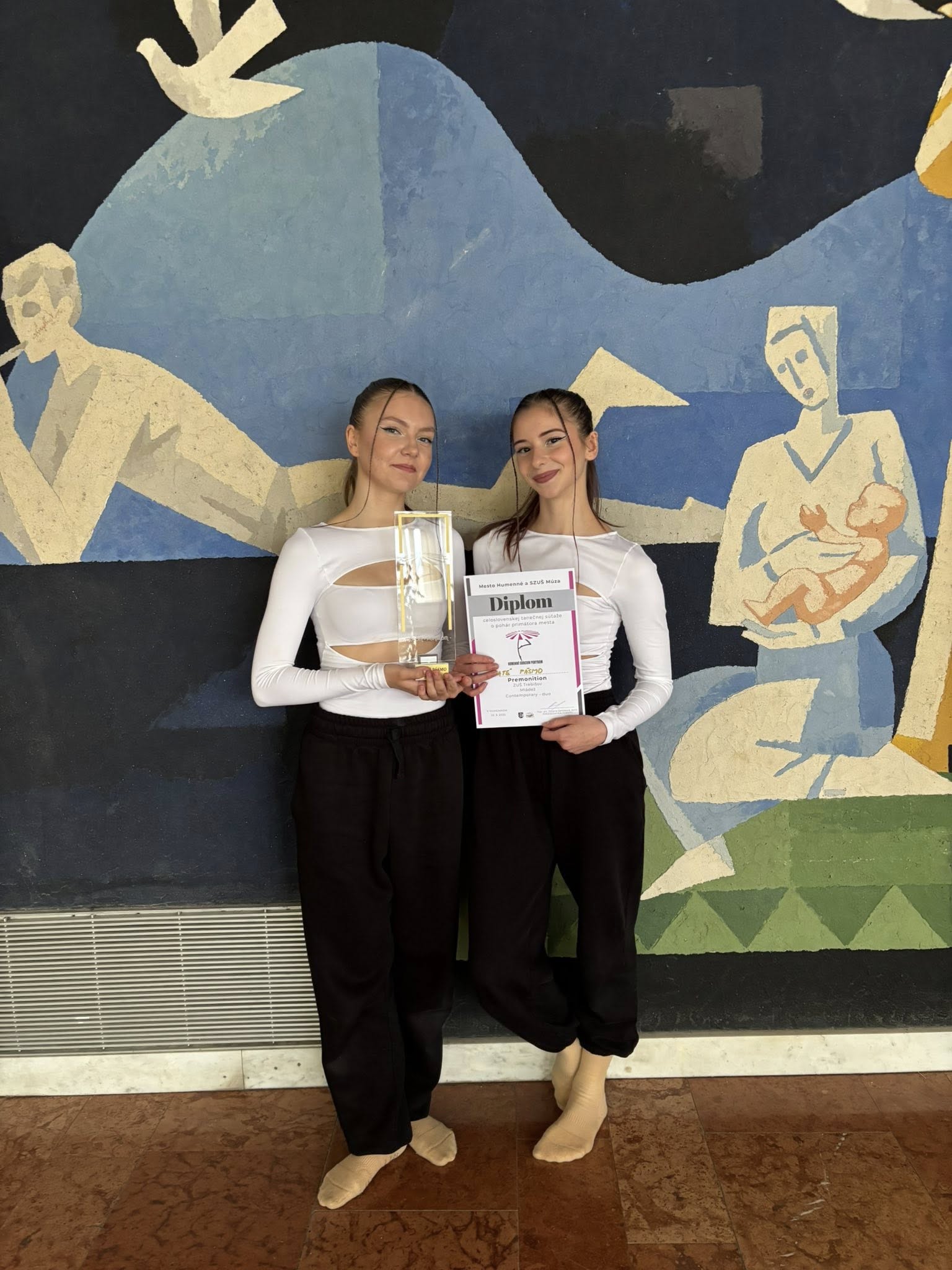 Dňa 22.5.2025 na celoslovenskej tanečnej súťaži Humenné srdcom-pohybom naše žiačky Tatiana Fecková a Františka Raničová získali zlaté pásmo v kategórii mládež-duo s choreografiou Premonition. Žiačky pripravil p. uč. Jakub Sim, DiS.art.