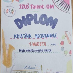 Na 1. ročníku výtvarnej súťaže „Moje miesta môjho mesta“ sa medzi ocenenými umiestnili aj naše šikovné žiačky z triedy p. uč. akad. maliara Antona Vasilka.